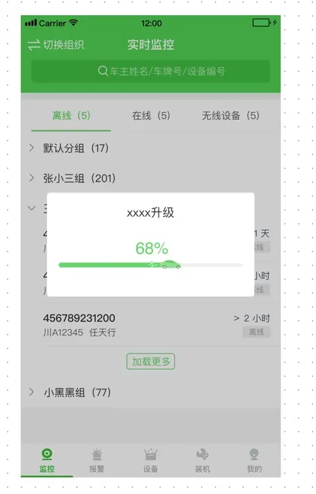 至于进度条控件的话,用画布画灰色的背景,绿色的进度,绿色的文字,还有汽车的图片,除了第一个,其他三个都要随着当前的progress改变,这些没什么好说的