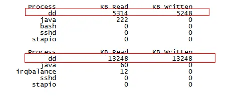 Systemtap的运行是在内核层面,而不是shell层面。Systemtap自带的examples中有监控IO的例子,以iotop.stp为例,执行的结果是:每隔5秒打印读写总量排前10位的进程。先写一个命令dd bs=64k count=40k if=/dev/zero of=test oflag=dsync,这个命令是每次从/dev/zero 读取64k数据,然后写入当前目录下的test文件,一共重复4万次。执行命令后打开iotop.stp监控,如下图: