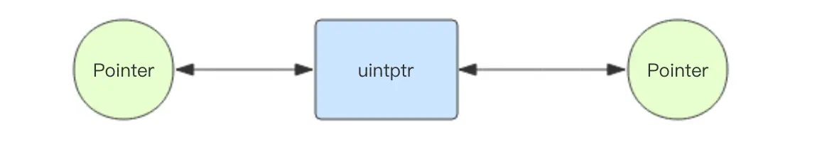Pointer 虽然是整型的,但是编译器禁止它直接进行加减运算。如果要进行运算,需要将 Pointer 类型转换 uintptr 类型进行加减,然后再将 uintptr 转换成 Pointer 类型。uintptr 其实也是一个整型。