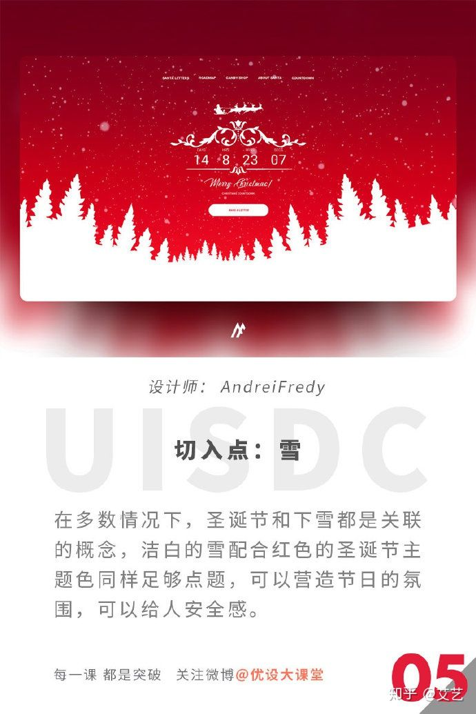 圣诞节专题没有思路?帮你梳理了9个主题切入点! 我爱设计 2018-12-19 226 阅读1分钟 原文链接: zhuanlan.zhihu.com 编者按:做圣诞节专题,没有思路怎么办?本文总结了9个主题切入点,让你灵感爆棚!文章目录圣诞树圣诞礼物圣诞美食圣诞老人雪家庭团聚雪人圣诞袜驯鹿切入点:圣诞树切入点:圣诞礼物切入点:圣诞美食切入点:圣诞老人切入点:雪切入点:家庭团聚切入点:雪人切入点:圣诞袜切入点:驯鹿本文转自:圣诞节专题没有思路?帮你梳理了9个主题切入点! - 优设-UISDC