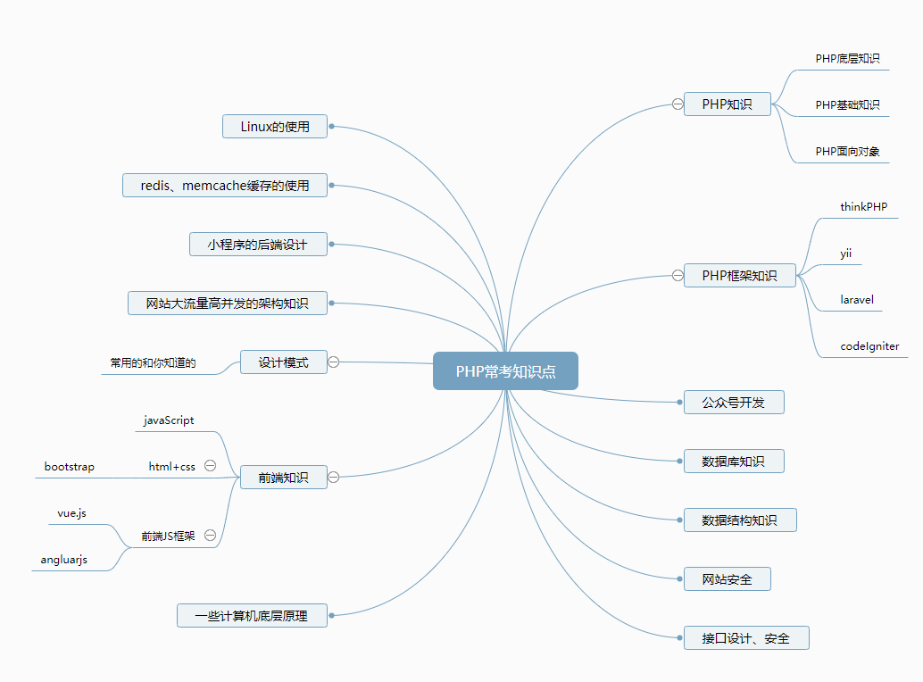 PHP面试大范围考点可以看如下的导图(也会存在个别知识点没有罗列)。
