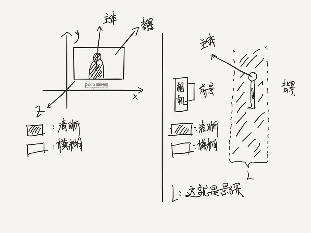 那么,要理解这一个问题就要知道,对焦的目的是什么。对焦其实就是景深的控制,关于景深,下面是一段小科普:由于照片是二维的,但实际生活是三维的,假设我们的照片是二维坐标的XY,所以当我们看到一张画面中有清晰,有模糊的时候我们会觉得,清晰和模糊是在XY中进行选择。但其实,照片清晰和模糊的范围是在Z轴上进行选择,看图:
