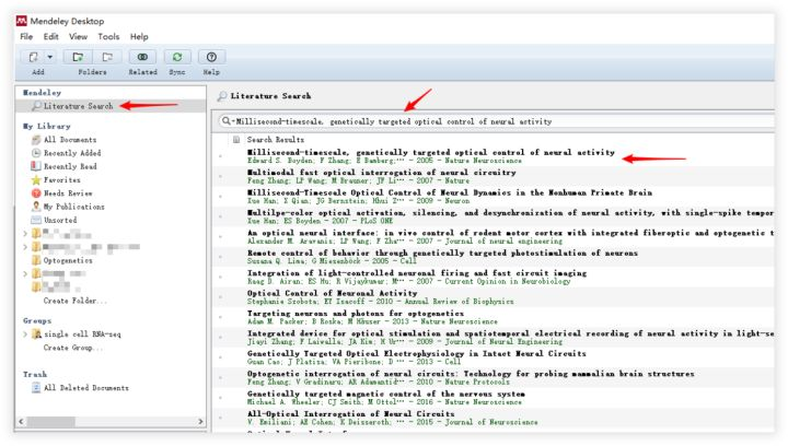 可以使用 Mendeley 中的 Literature Search 功能搜索文献。