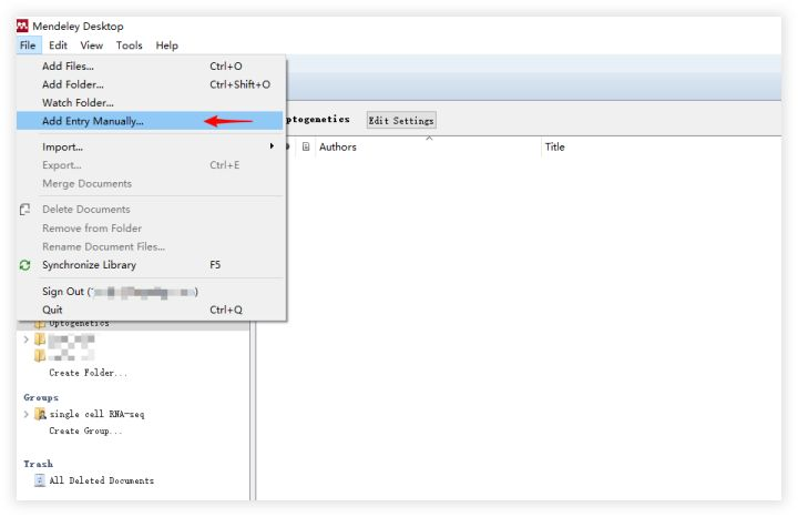 当上述的方法无法导入目标文献时,可以通过手动键入文献信息,导入文献条目。