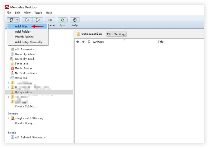 依然是选择 Add Files 将全文导入 Mendeley。