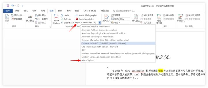 MENDELEY 插件改变引文格式