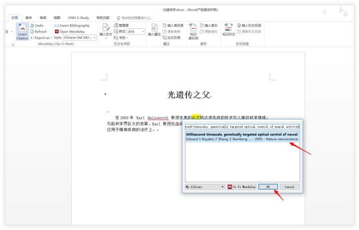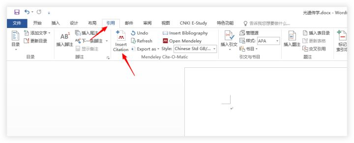 E-Study 插入文献的方法与 Mendeley 方法类似。