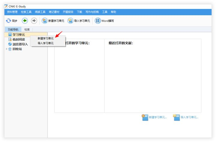 导入 E-Study 的步骤略有不同,在学习单元处右键 → 新建学习单元。