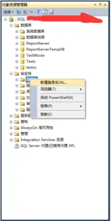 1、连接数据库-》展开安全性-》选择登录名-》选择新建登录名。
