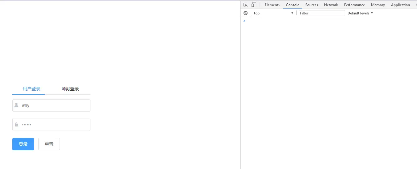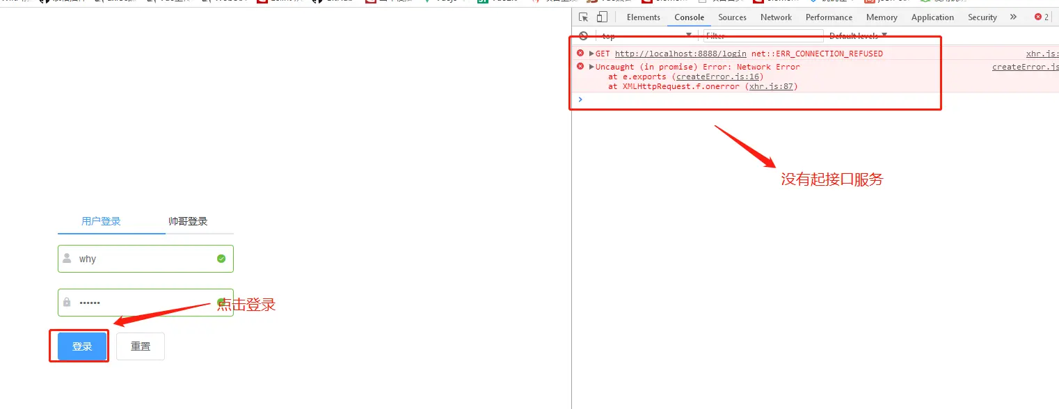 - 然后我们点击登录,发现没有反应,控制台报错,报错如下: