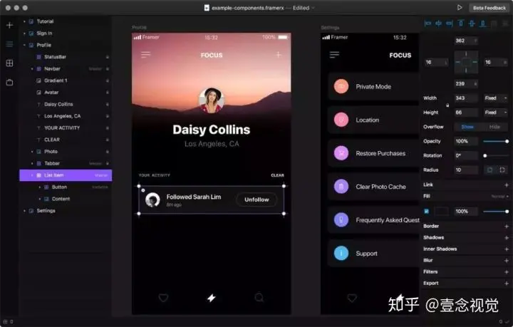 组件化是 Framer X 最大的变化也是最核心的理念,你在界面上看到的所有东西背后其实都是一个个 React 组件。
