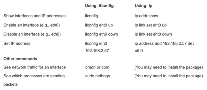在命令行上,有一个名为 ifconfig 的旧工具来管理网络,还有一个名为 ip 的新工具。在某些发行版中,ifconfig 被认为是不推荐使用的,默认情况下甚至没有安装。在其他发行版上,ifconfig 仍可以使用。