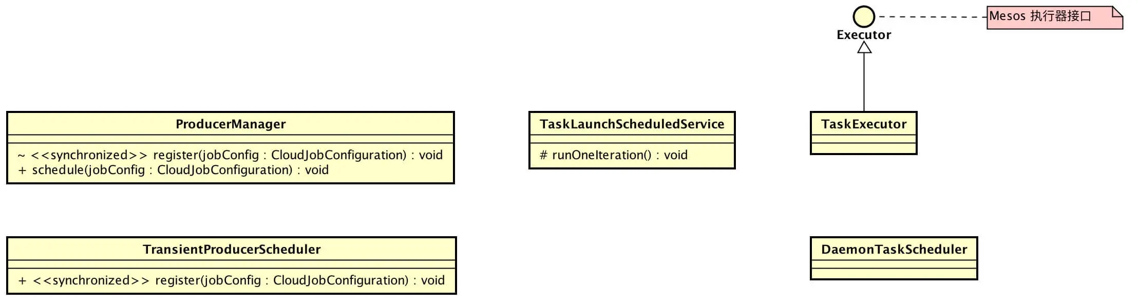 com.dangdang.ddframe.job.cloud.scheduler.mesos.SchedulerEngine。 - Elastic-Job-Cloud-Executor,实现执行器,实现类为