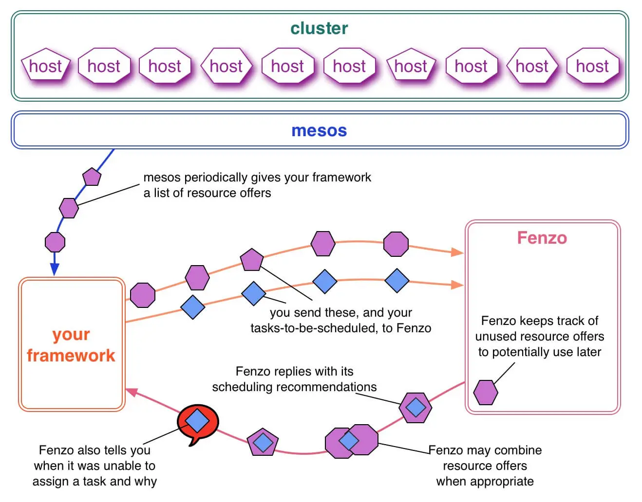 Elastic-Job-Cloud 基于 Mesos 实现分布式作业调度,或者说 Elastic-Job-Cloud 是 Mesos 上的 框架( Framework )。