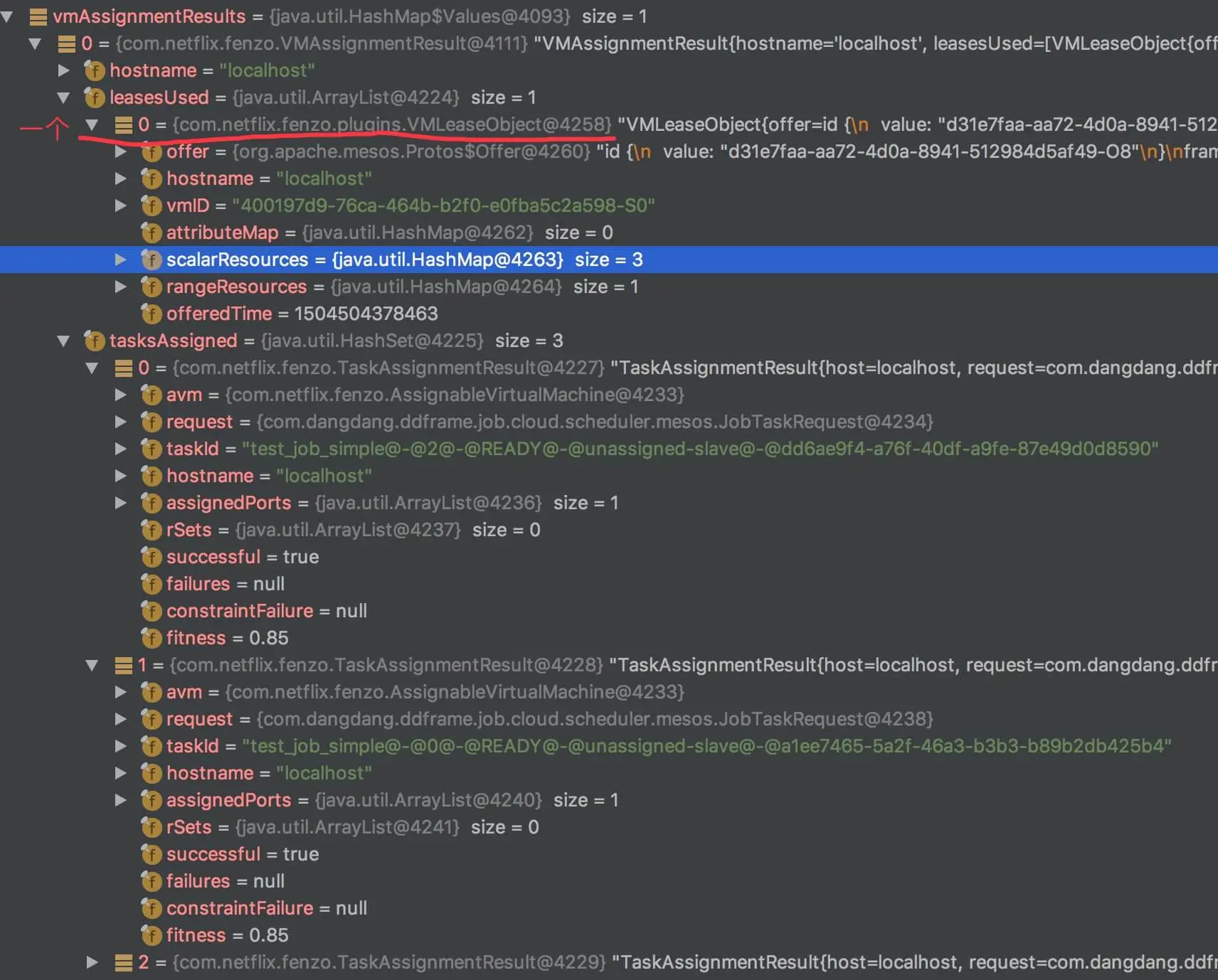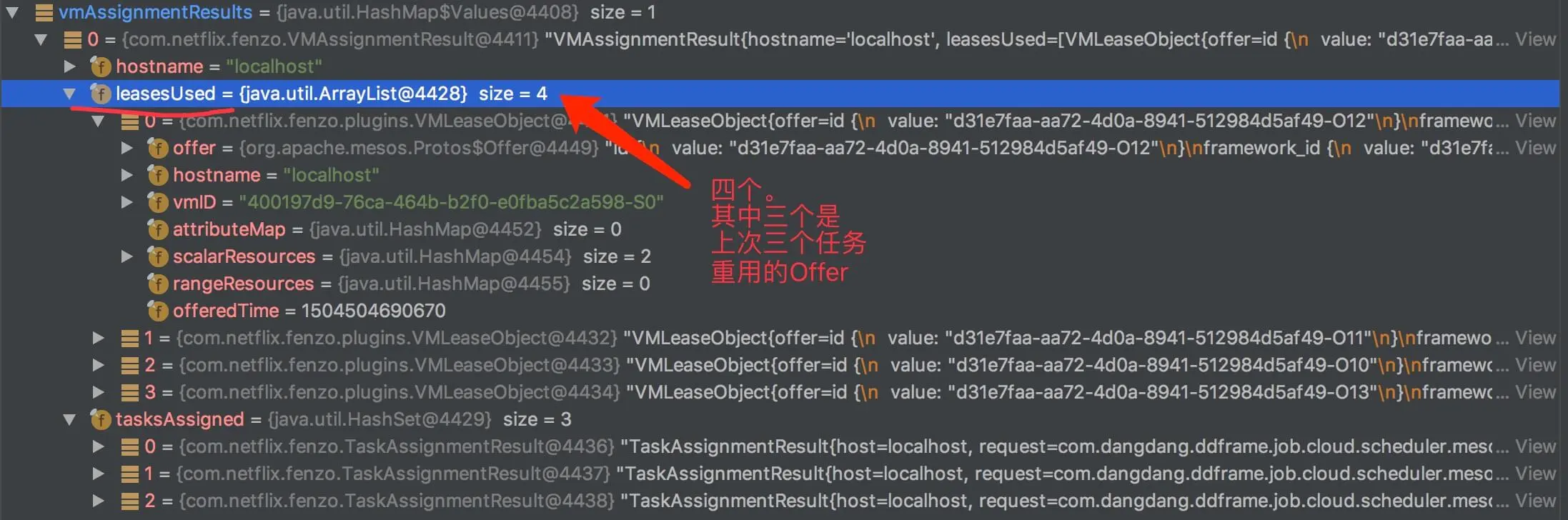 #unAssignTask(...)方法,通知 TaskScheduler 任务被确认未分配到这个主机。TaskScheduler 做任务和 Offer 的匹配,对哪些任务运行在哪些主机是有依赖的,不然怎么做匹配优化呢。在《Fenzo Wiki —— Notify the Scheduler of Assigns and UnAssigns of Tasks》可以进一步了解。实现代码如下:private void unAssignTask(final String taskId) { String hostname = facadeService.popMapping(taskId); if (null != hostname) { taskScheduler.getTaskUnAssigner().call(TaskContext.getIdForUnassignedSlave(taskId), hostname); } } - 当该作业对应的所有 Mesos 任务状态都更新为