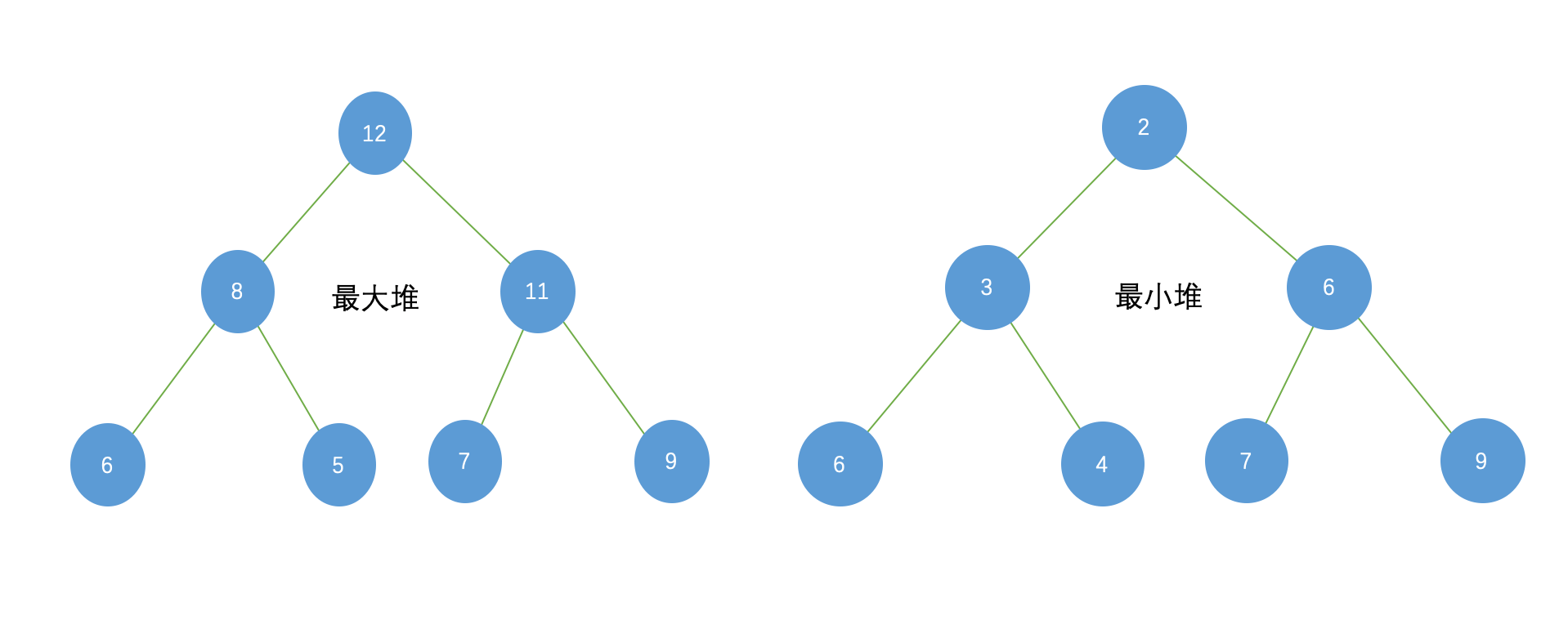 - 最大值时,称为“最大堆”,也称大顶堆;