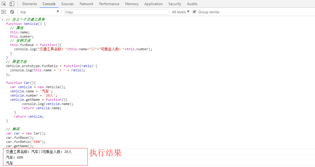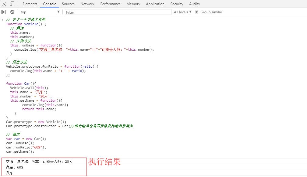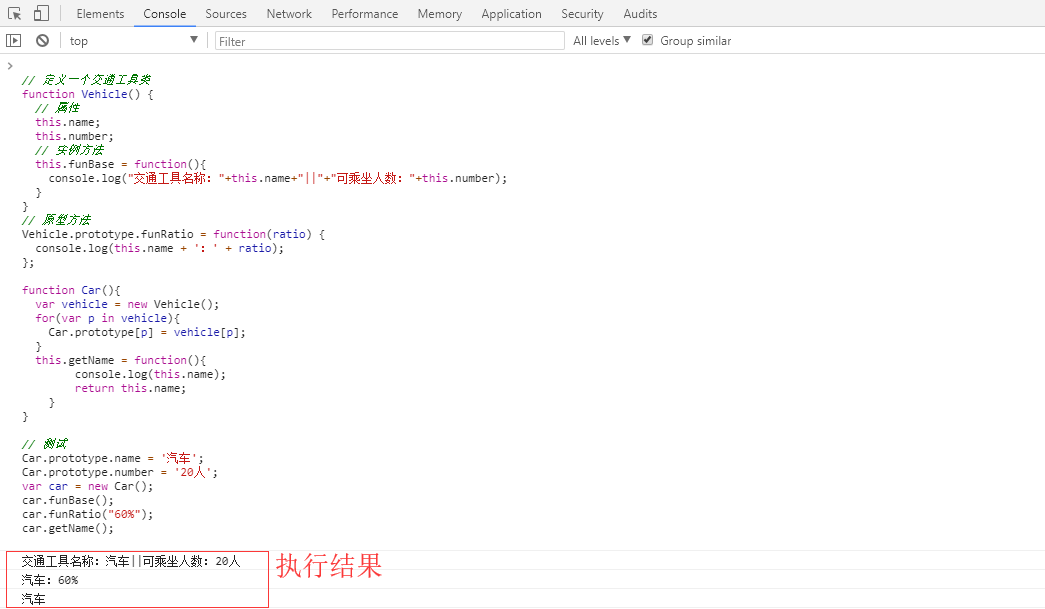 console.log("交通工具名称:"+this.name+"||"+"可乘坐人数:"+this.number);