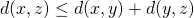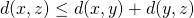 三角不等式的性质:两点之间的距离不能大于它们两点分别到第三点的距离之和。