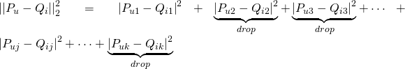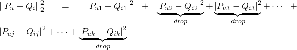 我们使用平方欧式距离来度量用户和物品之间的距离: