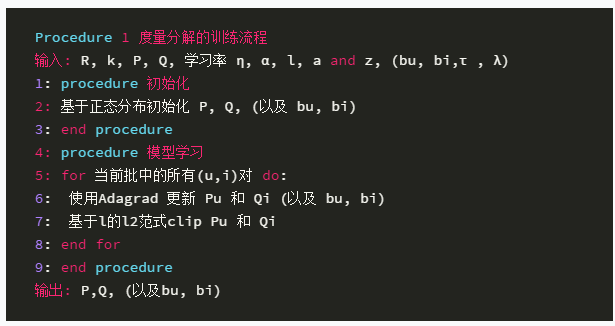 , 那么预测的评分将是1。对于物品排序,直接使用降序对距离进行排序即可,离目标用户较近的物品将会被推荐。FML的学习过程如下: