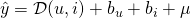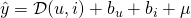 与矩阵分解想用,用户或者物品的单个属性也会有影响。例如,一些物品倾向于会受到更高的评分,而一些用户可能会给更低的评分。因此,FML将全局的用户和物品偏好信息集成到了方法中用于评分估计。最终的评分函数形式化如下: