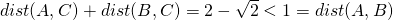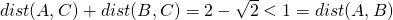 根据资料2, 举出反例: A=(1,0),B=(0,1),C=(1,1):