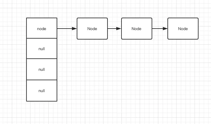 HashMap底层使用一个Node数组保存数据,对于数组同一个位置的不同key,则通过链表的形式保存,因此HashMap底层数据结构就是数组加链表:
