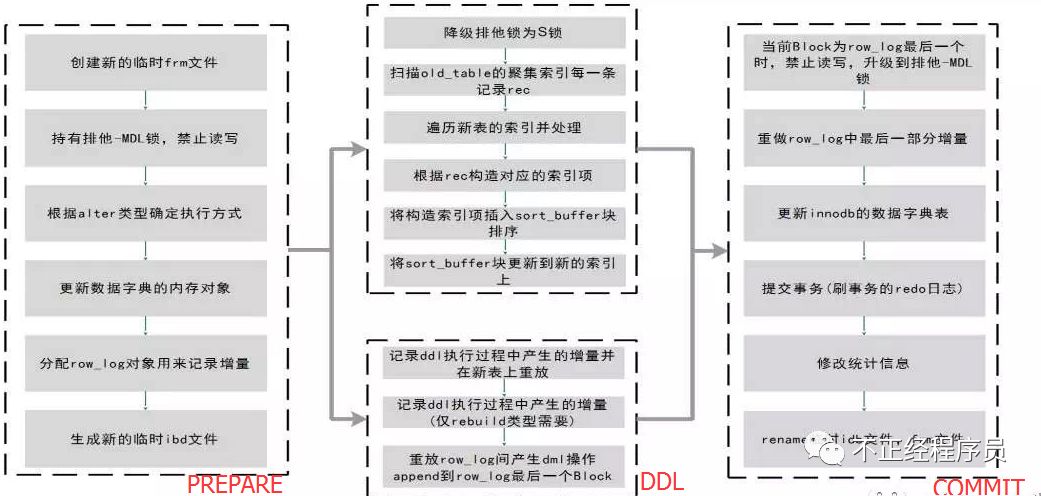1、拿 MDL 写锁2、降级成 MDL 读锁3、真正做 DDL4、升级成 MDL 写锁5、释放 MDL 锁