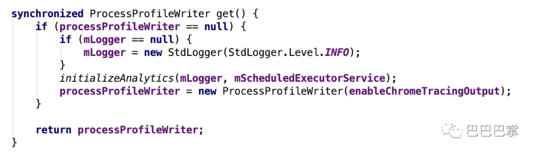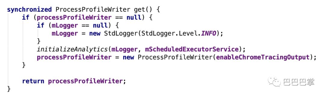 上面已经分析了 processProfile 是在 1 中 ProfilerInitializer.init() 内部调用了 ProcessProfileWriter.get() 完成的初始化,我们如果要达到目的,就不能走初始化,再来仔细看看 ProfilerInitializer.init() 的实现: