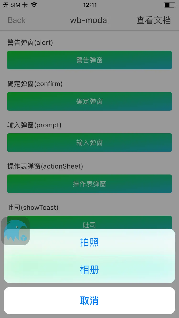 # 操作表弹窗,配合 wb-external 可调取摄像头及相册