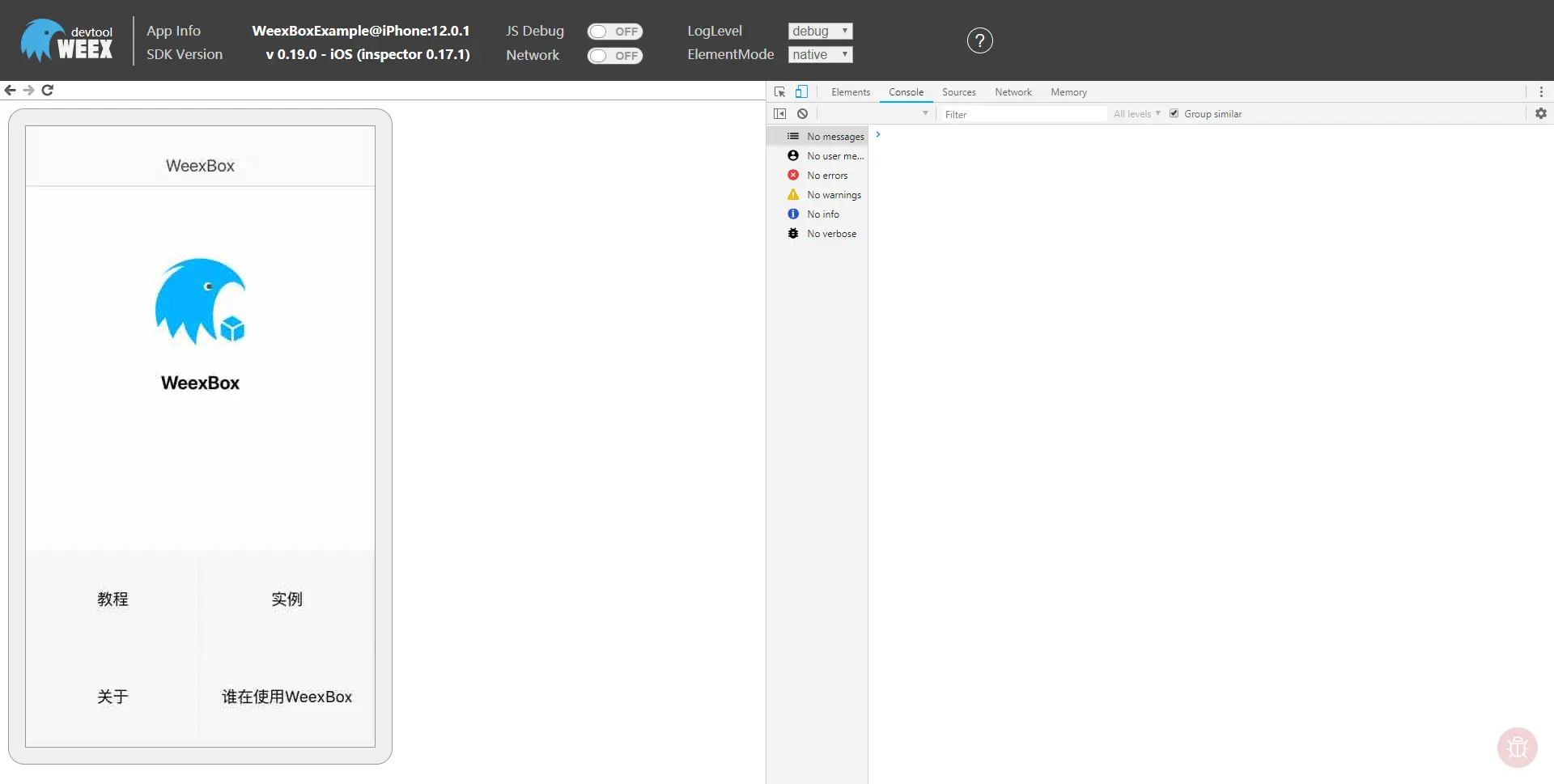 更多详细的 debug 步骤请查看,WeexBox 开发指南中的 Debug 调试
