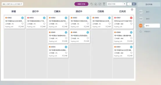 DevCloud项目管理是基于项目的管理, 提供精简流程和scrum流程两种管理服务,其中Scrum流程是为敏捷开发量身定制的,包括项目规划、敏捷迭代、需求管理、缺陷跟踪、文档管理、看板、报表统计分析等功能。项目规划功能可以用思维导图形式的可视化界面对项目进行Epic/Feature/User Story多级拆分。规划出来的User Story以看板的形式显示在项目的Backlog里,