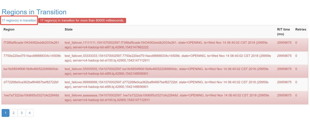 可以看到现在有17个region处在transition中,我们可以点击红框圈住的这个链接,会展示所有的region。