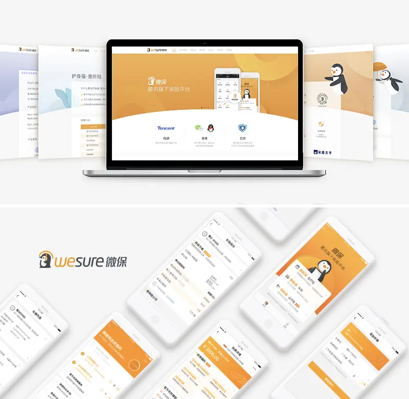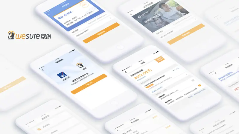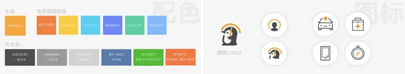 界面主色调沿用了“微保橙”与品牌色形成呼应。由于保险没有实体产品,为了让用户明确区分不同的险种(财产险、人寿险、意外险、健康险等),通过设定不同险种的主题色,从视觉上帮助用户区分各类险种。