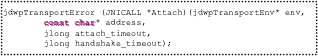和一般的连接方式类似,JDWP可以主动去连接debugger,也可以等待debugger的连接。对于主动去连接debugger,需要调用Attach方法,其定义如下: