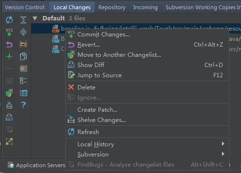 还有就是,刚刚从eclipse转过来的同学,可能会发现,在这编辑器里面修改了文件之后,发现,文件夹的颜色不像eclipse那样跟着变颜色。因为所有被修改的代码都会在这个local changes的地方显示的,所以,文件夹变颜色的这个,也就显得没必要啦。