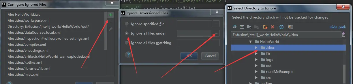 他可以忽略某个文件,或者忽略某个文件夹下的文件,或者是某一类型文件。。。对应上图中间的三个操作。