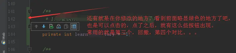 因为我这个是为了写这个文章而做的没必要的修改,这个时候,我就可以选中这个default类别,然后点击那个第一竖排的第三个按钮,revert,直接把代码回撤到与库里代码相同的版本。也就是撤销我的修改。(顺便示范一下这个按钮的作用)