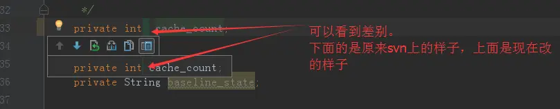 第三个按钮就是在你把当前文件已经修改过了,有和svn库里面的代码做对比,那么就可以直接点击这个按钮,然后就可以直接看文件修改前后的差别啦。