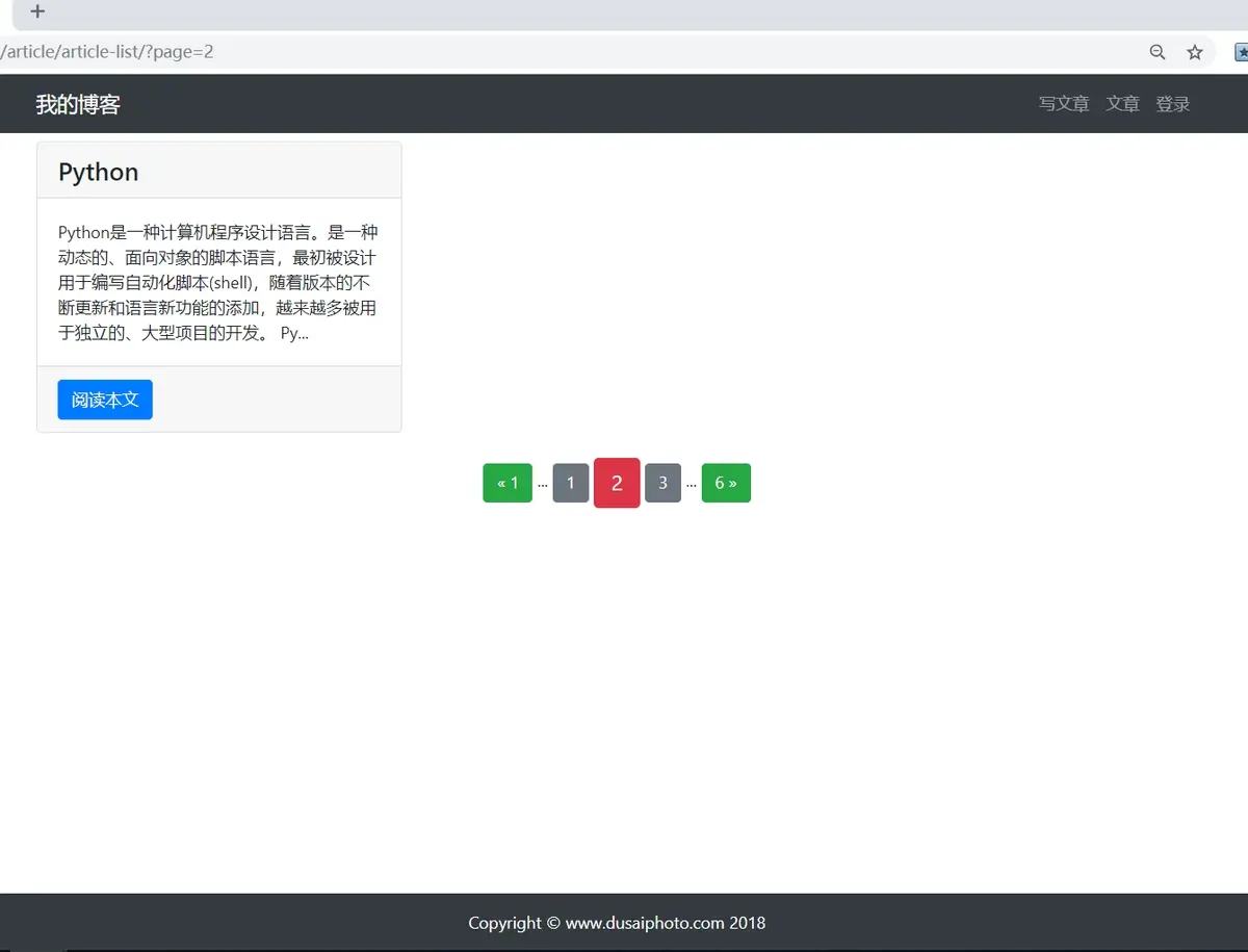 写一个完善的分页功能是有些难度的,好在Django已经帮你准备好一个现成的分页模块了(Django把大部分基础功能都替你准备好了!)。内置模块虽然简单,但是对博客来说完全足够了。