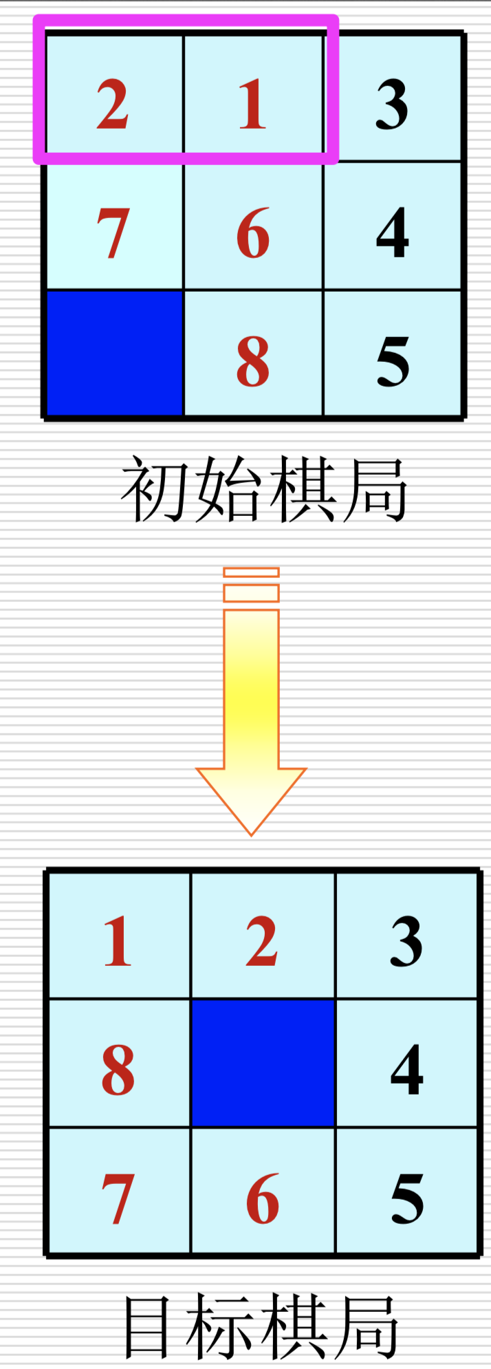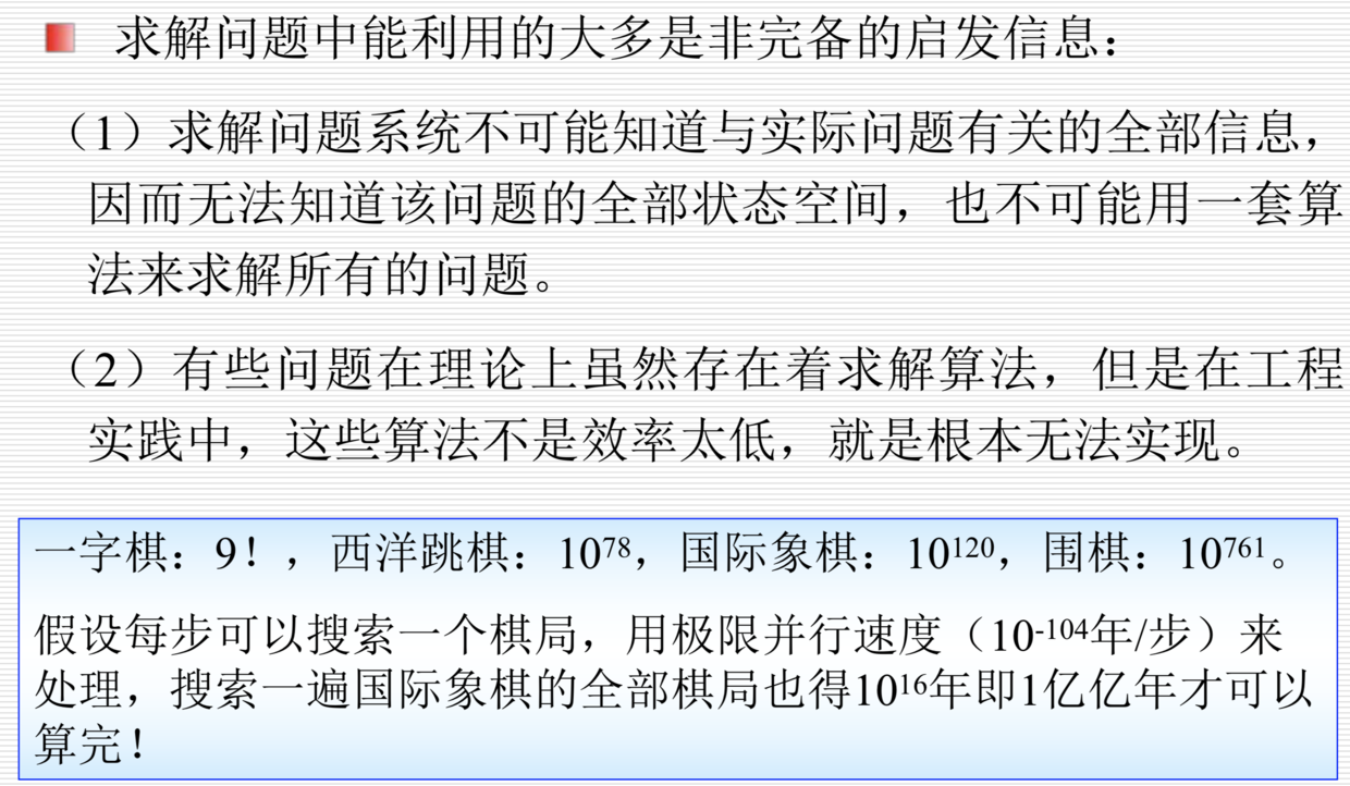 人工智能导论 (七) - 搜索求解策略 已注销 2018-12-20 1,565 阅读1分钟 1 搜索的概念 盲目搜索与启发式搜索 2 状态空间知识表示法 2.1 状态空间的表示法 2.2 状态空间的图描述 3 启发式图搜索 3.1 启发式策略 运用启发式策略的两种基本情况 3.2 启发信息和估价函数 3.2.1 启发信息 3.2.2 估价函数 注意 八数码问题的启发函数 3.3 A搜索算法 3.4 A*搜索算法及其特性分析 3.4.1 可采纳性 3.4.2 单调性 3.4.3 信息性