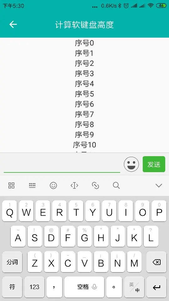 但是为什么微信聊天页面使用 RecyclerView 布局的效果不是这样的啊?为此我联系到了一个仿朋友圈的大神,他告诉了我第二种方法:动态计算软键盘的高度