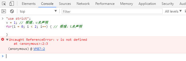 正常模式下,对一个对象的只读属性进行赋值,不会报错,只会默默地失败。严格模式下,将报错。