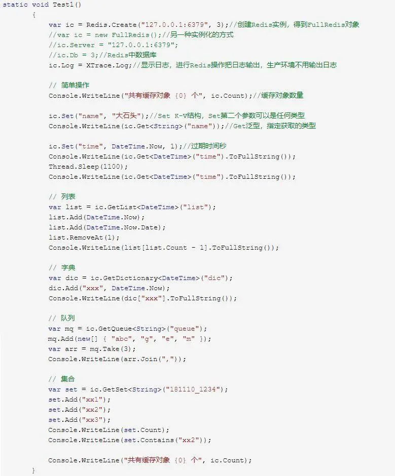 所以我们Redis的封装有两层,一层是NewLife.Core里面的Redis以及RedisClient;另一层就是NewLife.Redis。这里面的FullRedis是对Redis的实现了Redis的所有的高级功能。