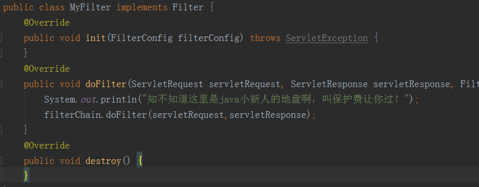 配置和上面差不多,写个Filter实现类,利用FilterRegistrationBean往容器里添加filter
