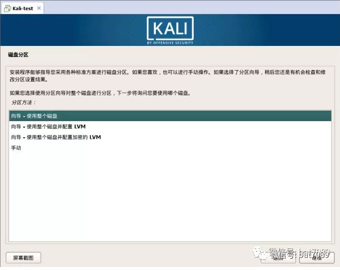 为了安装KaliLinux,我们使用了图形安装程序并选择引导磁盘分区,这是当我们安装一个操作系统,特别是基于unix的一个,我们需要定义系统的哪部分(或安装),安装硬盘的分区;幸运的是,Kali Linux的安装可以解决这个问题,我们只需要选择硬盘并确认建议的分区。我们还将Kali配置为使用包管理器的网络存储库。这将允许我们安装和更新软件从互联网和保持我们的系统最新。