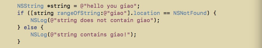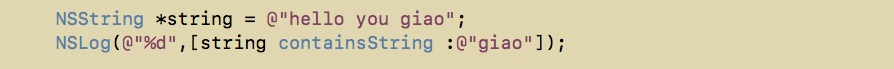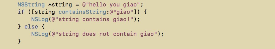 iOS 8 和 OS X 10.10 (Yosemite) 增加了 - (BOOL)containsString:(NSString *)str 这个方法,用这个方法来检索包含字符串还是很简单方便的( XCode 中头文件里的方法解释都直接这样说了:D)。
