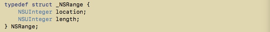 提示的是类型不符。 command 加左键点击方法进去,然后看返回的类型 NSRange 是什么类型,发现 NSRange 是一个结构体