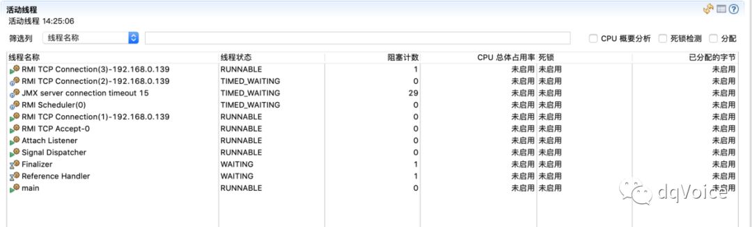 RMI开头的线程,负责JVM跟JMC客户端通信,吐出JVM内的运行信息;