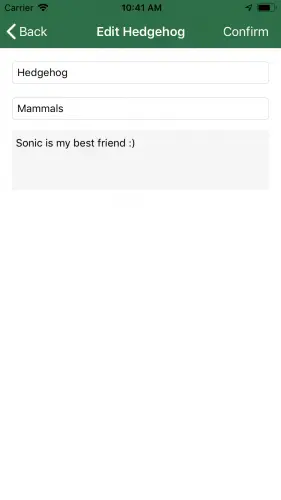 构建并运行您的应用程序。 打开日志视图,然后点击Specimen。 您将看到填充了所有字段并准备编辑的详细信息。